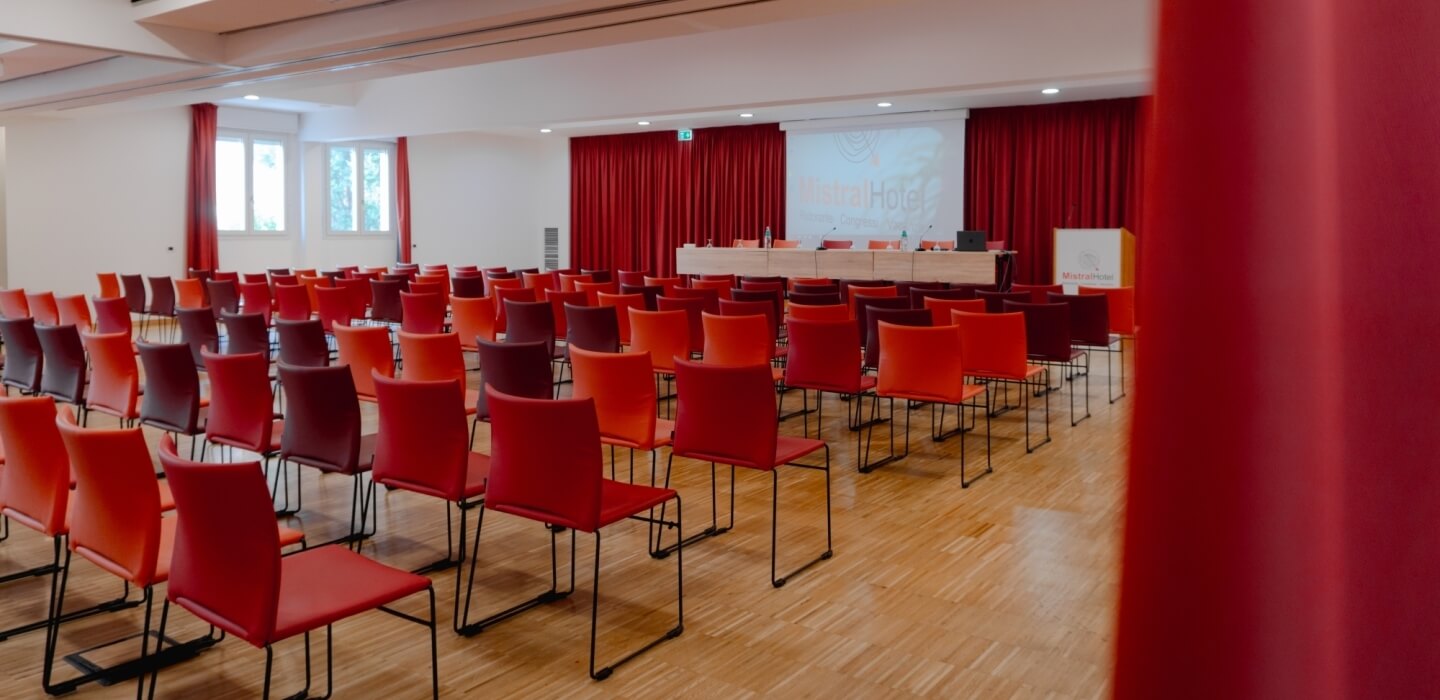 La nostra area congressi, grazie a pareti scorrevoli modulabili, offre soluzioni flessibili per ogni esigenza. La Sala Maestrale, con capienza fino a 200 persone, può essere suddivisa in tre sale più piccole – Grecale , Ponente e Levante – per ospitare simultaneamente più incontri.