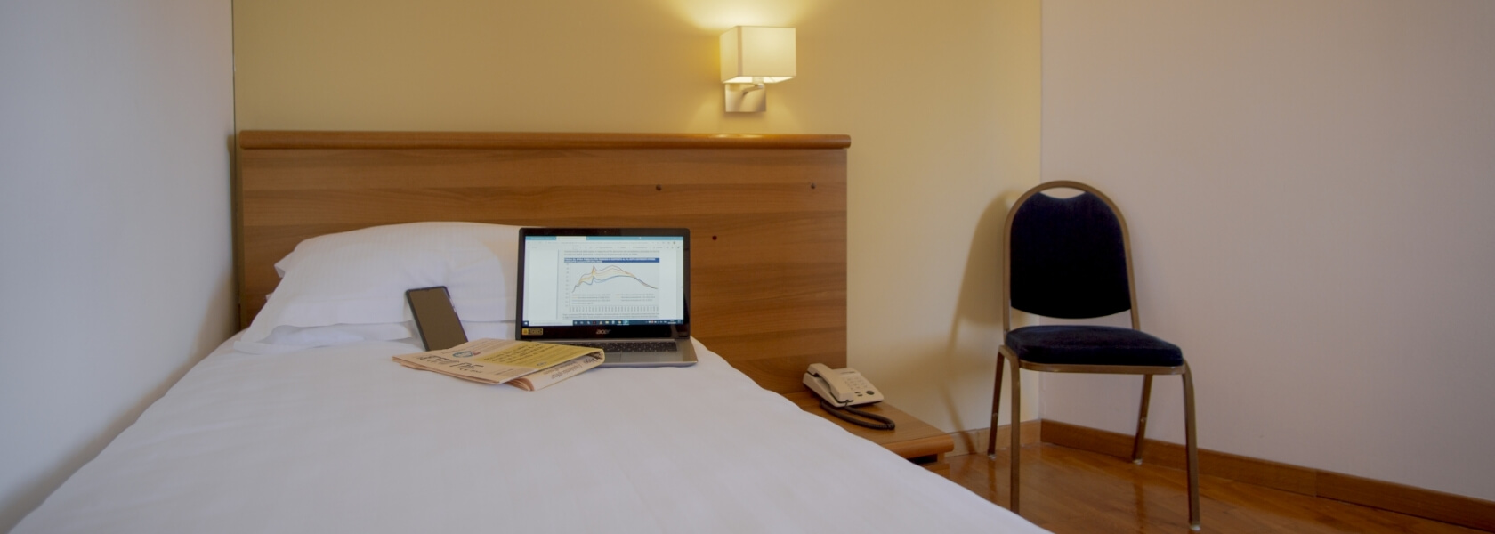 Bedroom of 12 smq for one person, furnished with a single bed and with parquet floor.