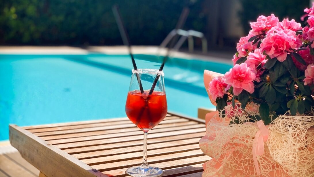 L'albergo dispone di una piscina esterna (12 metri per 6) inserita in un piccolo giardino con siepi di corbezzolo e di un bar aperto 24 ore al giorno con una vasta scelta di vini e drink.
