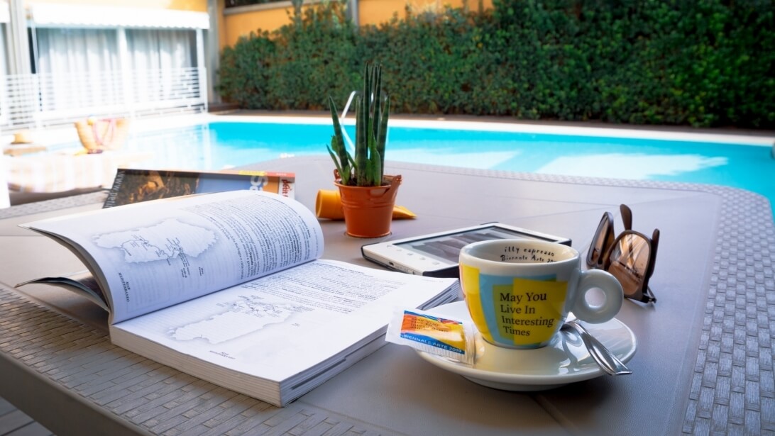 La hall garantisce la presenta di diversi angoli lettura e mette a disposizione degli osptiti un ampio tavolo ideale per il co-working dotato di postazione Internet.